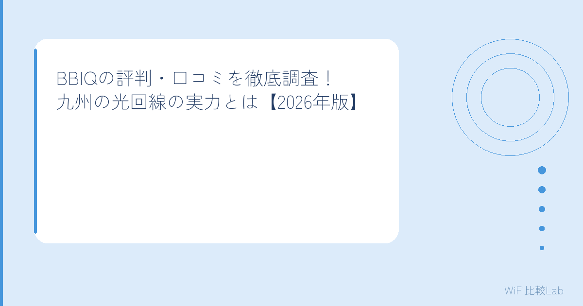 BBIQの評判・口コミを総合すると、九州エリアで光回線を選ぶなら鉄板の選択肢と言えるよ。速度の安定感、九電セット割のお得さ、セキュリティ無料など、メリットが多い回線だね。全国の光回線と比較したい場合はWiFi・光回線おすすめランキング10選も参考にしてみて。