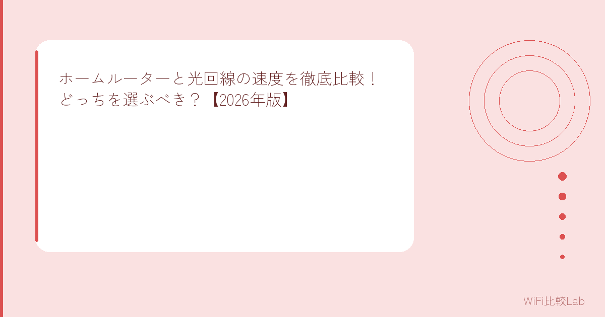 工事不要で手軽に使えるホームルーターと、安定した高速通信の光回線。どちらを選ぶか迷っている人は多いと思う。結論から言うと、速度と安定性は光回線が圧倒的に上。でもホームルーターには別のメリットがある。