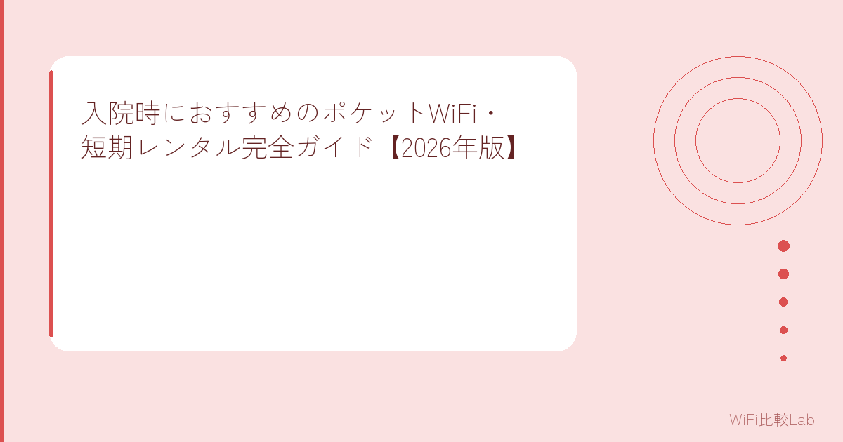- 短期入院(1〜3日)→ 1日単位のレンタル(WiFiレンタルどっとこむなど)