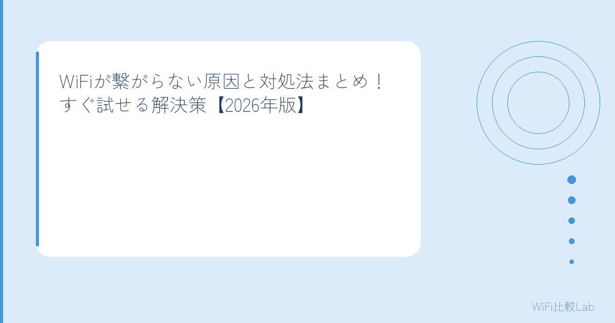 でも大丈夫。WiFiが繋がらない原因のほとんどは、簡単な対処で解決できるよ。この記事では、WiFiが繋がらないときに試すべき対処法を、優先度の高い順に紹介するね。上から順番に試していけば、大半のケースで復旧できるはず。