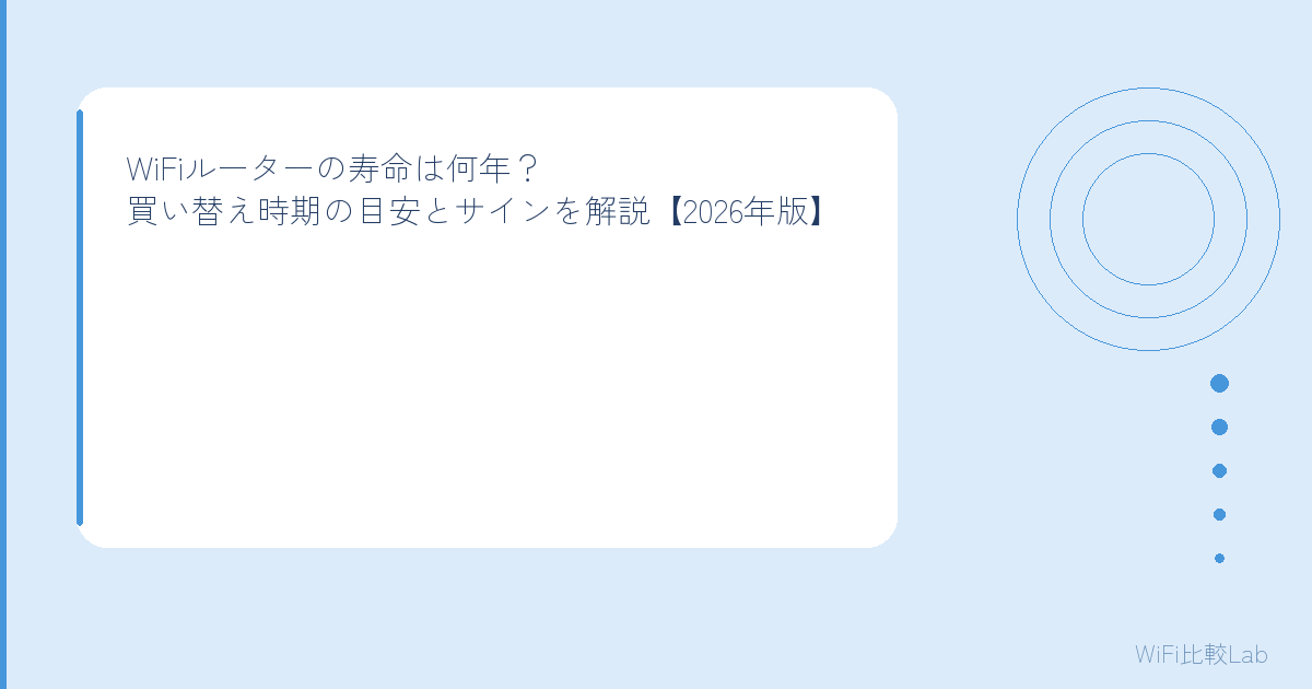 WiFiルーターの寿命は4〜6年が目安。接続が切れやすい、速度が遅い、ファームウェア更新が止まってるなどのサインが出たら買い替えを検討しよう。